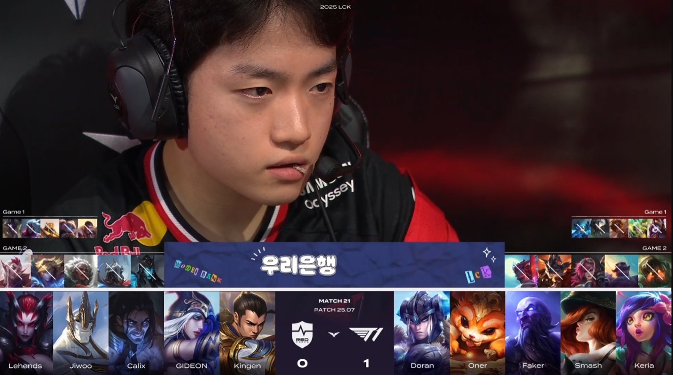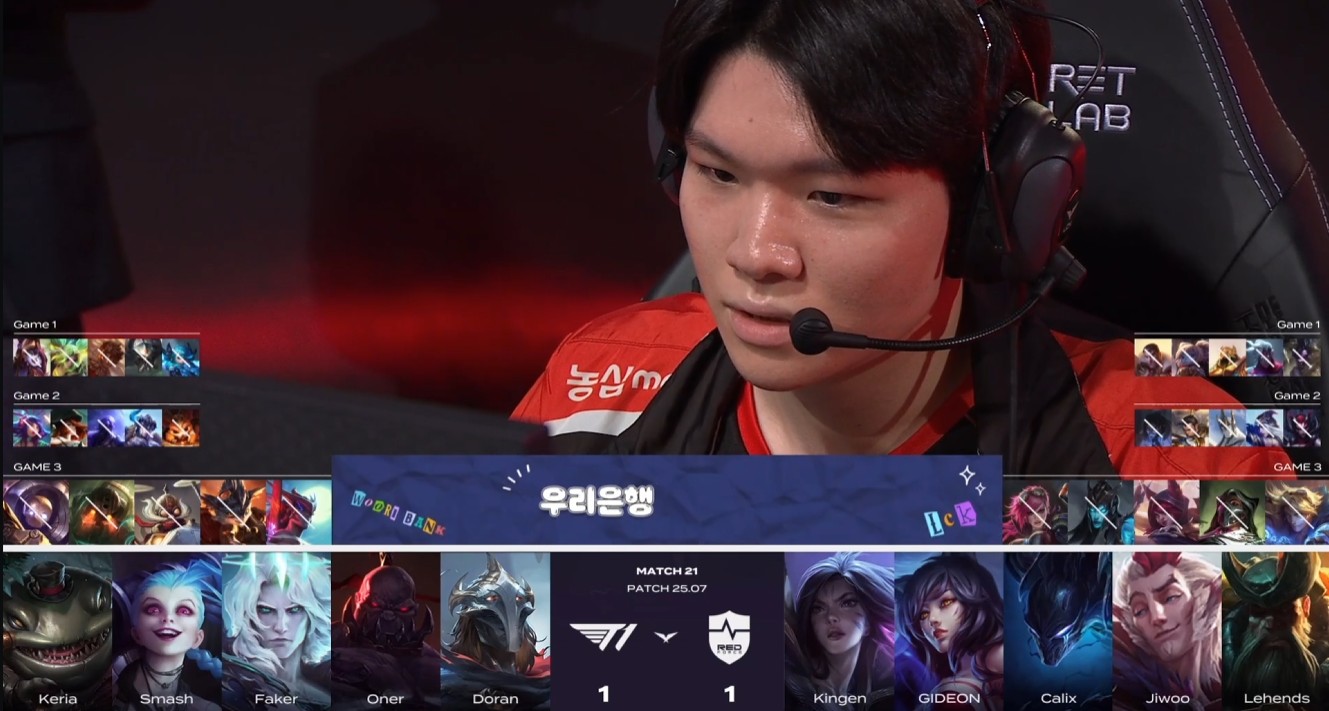 - 농심은 CL의 미드라이너 칼릭스 선수를 콜업시켰는데요, 07년생 굉장히 어린선수로, 기용이유로는 기존 미드라이너의 경기내외적으로 요구한 부분이 크게 개선되지 않았음을 얘기했는데요, 이번 주 강팀과의 매치가 이어져있는데 그만큼 내부적으로 중요한 포인트가 있었던 것 같습니다. 신인 선수가 레전드로 불리는 페이커선수들 상대로 어떤 모습을 보여줄지 기대반 걱정반 되는 매치시작 전이었습니다.