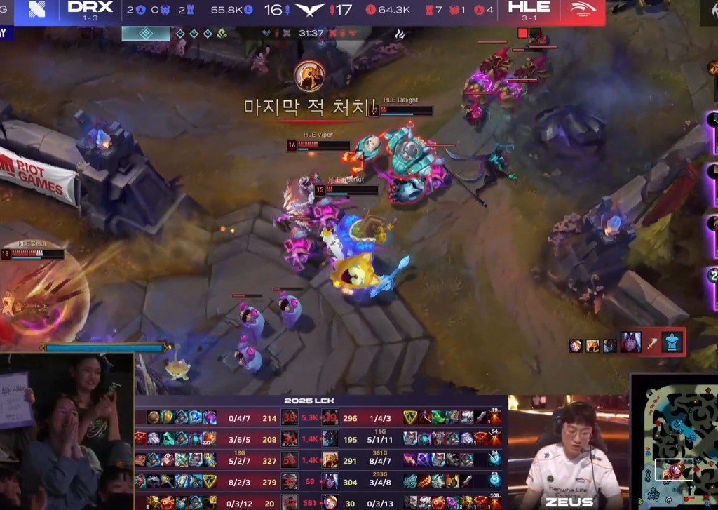 - 그러던 중 DRX에게 기회가 찾아왔는데요, 제우스 선수의 니달리를 잡아낸 후 그대로 한화가 어찌 보면 무리하게 여는 싸움까지 잘 받아내 승리하며 아타칸까지 챙겨가게 되었습니다.