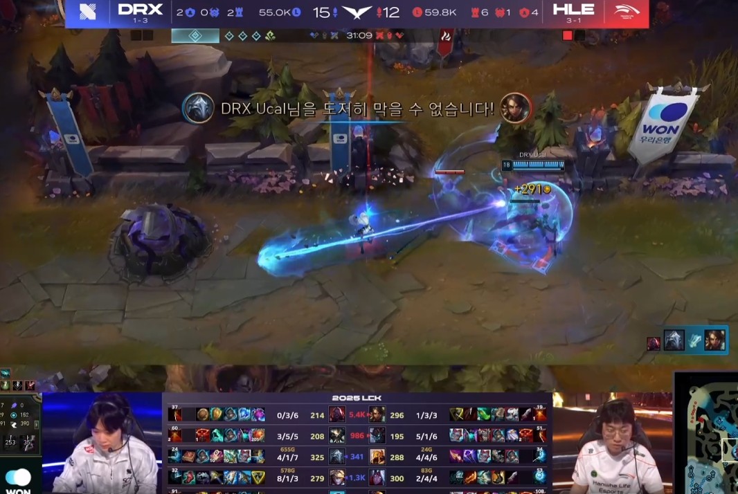 - 제우스 선수의 탑 니달리가 등장하며 보는 이들로 하여금 기대를 모았는데요, DRX의 조합도 굉장히 단단하고 후반 갔을 때 파괴력이 나오는 조합이지만 니달리를 통한 운영으로 본대 인원수가 차이 나거나 동률이 됐을 때 한화생명의 조합도 강력한 조합이기 때문에 니달리의 활약이 이게임의 승패를 판정 지을 것 같아 보입니다.